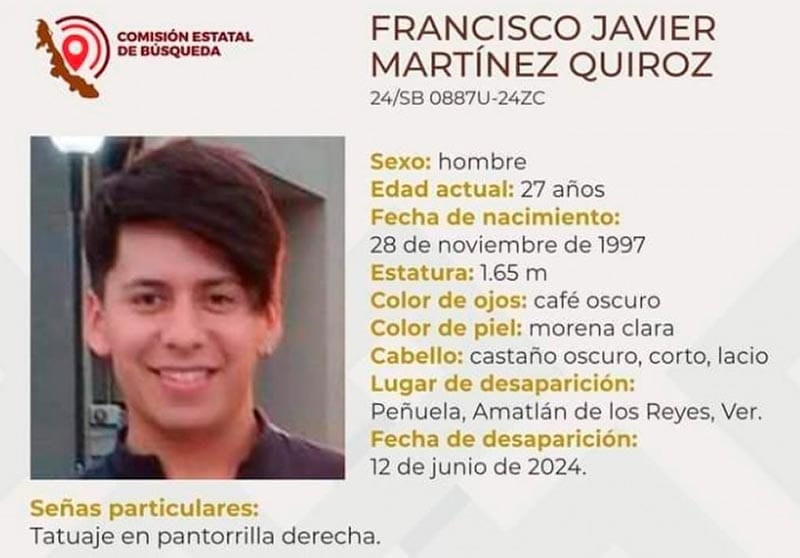 Horas más tarde fue identificado como Francisco Javier Martínez Quiroz, de 27 años, de Peñuela, municipio de Amatlán de los Reyes.