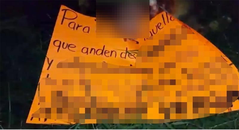 La cartulina hallada en el lugar indicaba algo así como: Para todos aquellos que anden de chapulines y extorsionadores, además que ya tenemos en la mira a Ismael y Homero.
