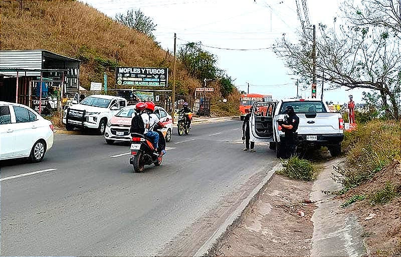 Los elementos de la UECS, estaban colocados en los costados de la avenida principal, y fuertemente armados, revisaron vehículos sospechosos al azar.