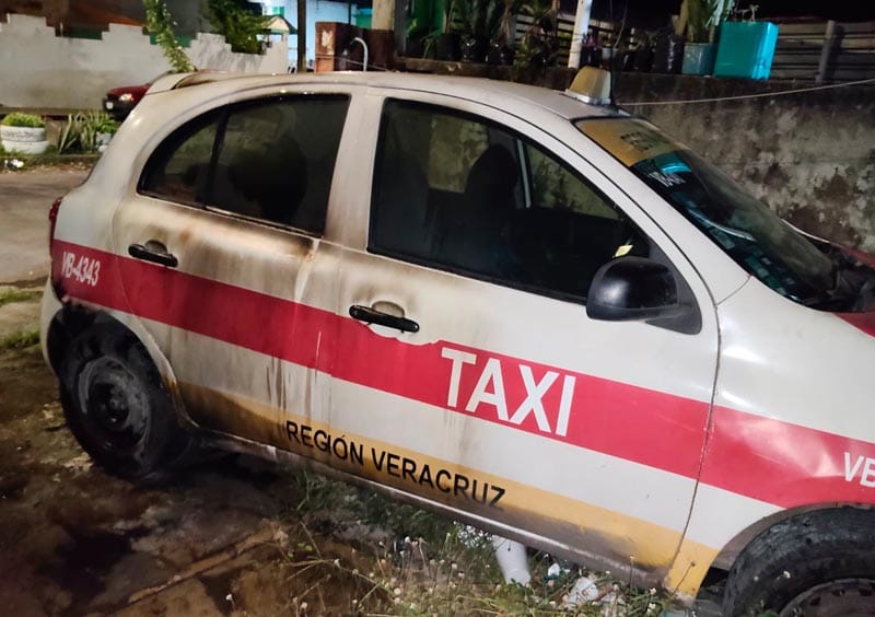 Virginia Espinoza, propietaria del taxi, económico 4343, de la región Veracruz, señaló que dos sujetos en una motocicleta eran los principales sospechosos de haber provocado el incendio de la unidad.