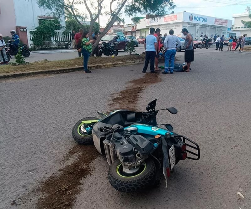 Un fuerte accidente vial se dio entre un automóvil y una motocicleta en las calles de Esteban Morales y Aconcagua, en Infonavit Los Volcanes en la ciudad de Veracruz.
