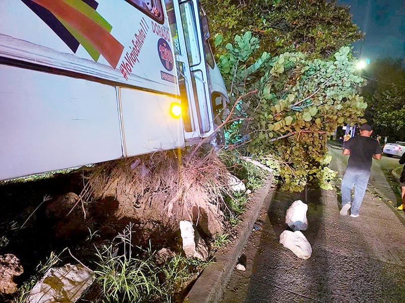 Unas veinte personas heridas, entre ellos niños, así como cuantiosos daños materiales, fue el saldo que arrojó anoche el choque del autobús 1280 de la ruta 111, que impactó contra un árbol al salirse de la carretera Veracruz-Xalapa, frente a Geo Villas del Puerto.