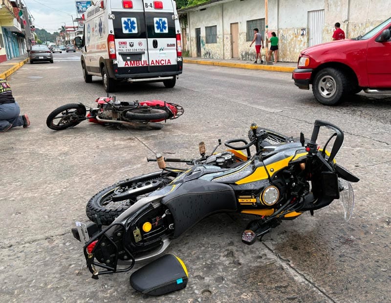 De acuerdo con el reporte, una motocicleta Vento Dakar 300, color amarillo con negro y sin placas, recién salida del concesionario y conducida por Manuel D. C., de 27 años y vecino de Tlapacoyan, circulaba con rumbo al centro cuando fue impactada.