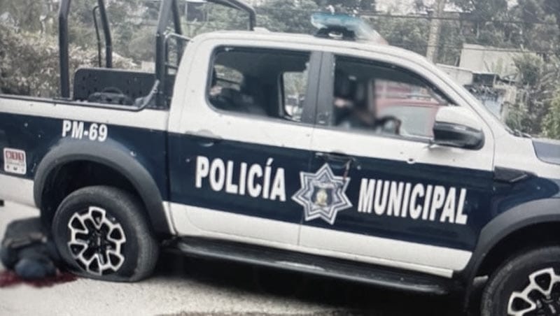 Desconocidos que permanecían pertrechados entre los arbustos dispararon en contra de la patrulla de la Policía Municipal (PM), la unidad registró cerca de 50 impactos de arma de grueso calibre.