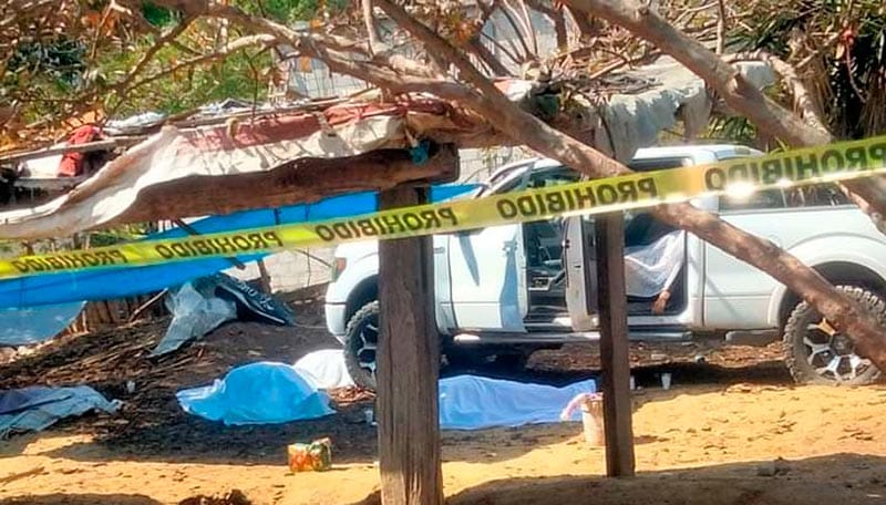 En el lugar, junto a una camioneta Ford doble cabina color blanco, placas SP-45377 de Puebla, la cual presentaba cinco impactos de arma de fuego, quedaron los cadáveres de cinco personas, mientras en sobre el asiento de atrás otras dos víctimas.