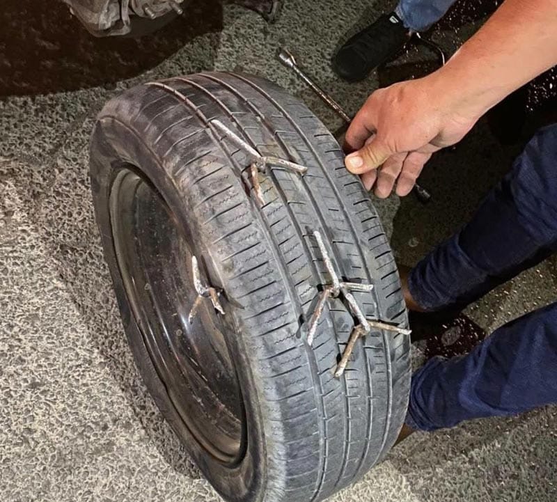 *Se detuvieron porque había decenas de ponchallantas en el camino y, en ese momento, criminales que se encontraban escondidos entre el monte los rafaguearon.