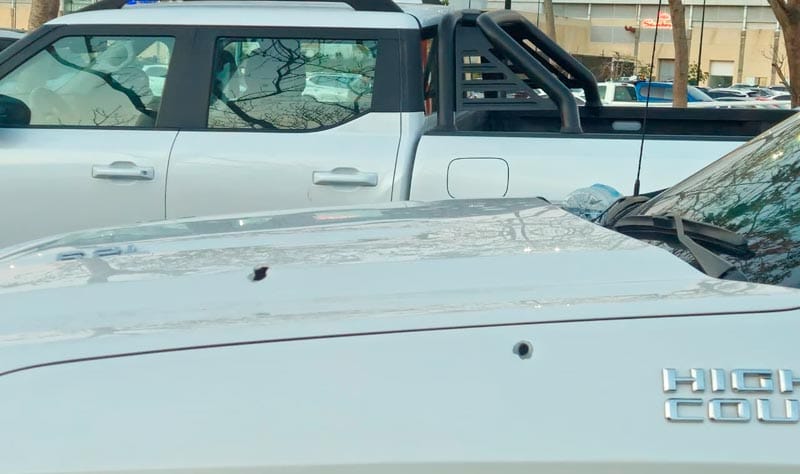 La camioneta Chevrolet Cheyenne registró al menos cinco impactos de arma de fuego, Enedino Utrera quedó tendido sobre el pavimento, boca abajo, aún con vida.