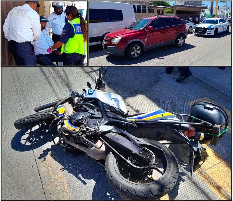 Y fue en ese momento que el moto patrullero se impactó contra la Chevrolet Captiva y salió proyectado contra el pavimento, resultando lesionado, por lo que fue auxiliado por paramédicos.