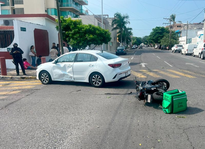En ese momento, un motociclista a bordo de una Italika 250Z color gris, con placas del mismo estado, que avanzaba por la avenida Héroes de Puebla, terminó golpeando el costado del automóvil. La unidad de dos ruedas era guiada por Leonel de Jesús Espinoza Calixto, quien tras el impacto resultó con lesiones menores.