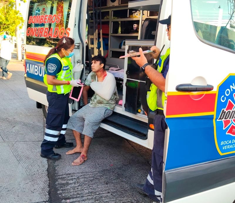 Jesús Elías resultó con una herida cortante entre cuello y clavícula, además de probable lesión en brazo izquierdo, por lo que fue trasladado al Hospital Regional de Boca del Río.