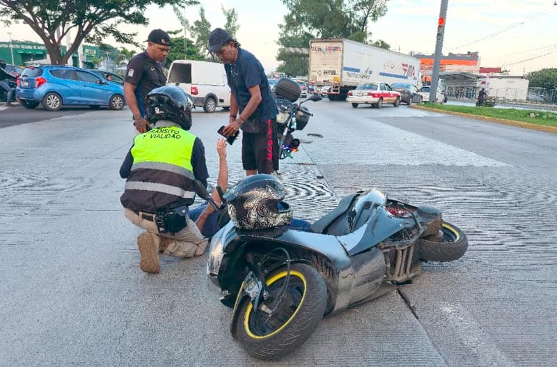 El accidente ocurrió en la avenida Rafael Cuervo, a la altura de la colonia Playa Linda, cuando el motociclista circulaba por dicha vialidad y fue chocado por la unidad que ingresaba desde la avenida Cuauhtémoc.