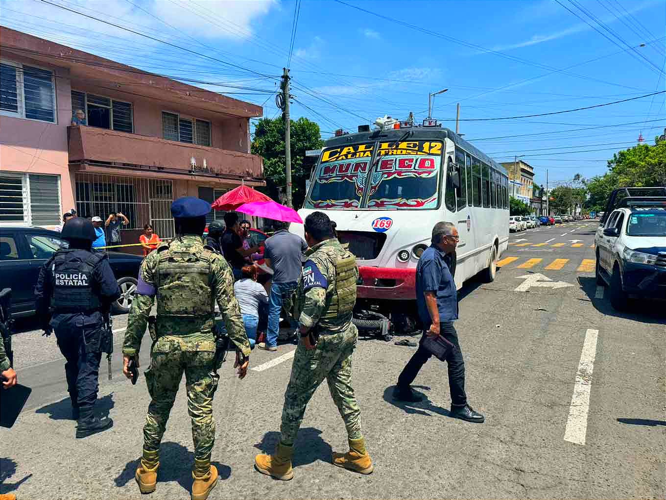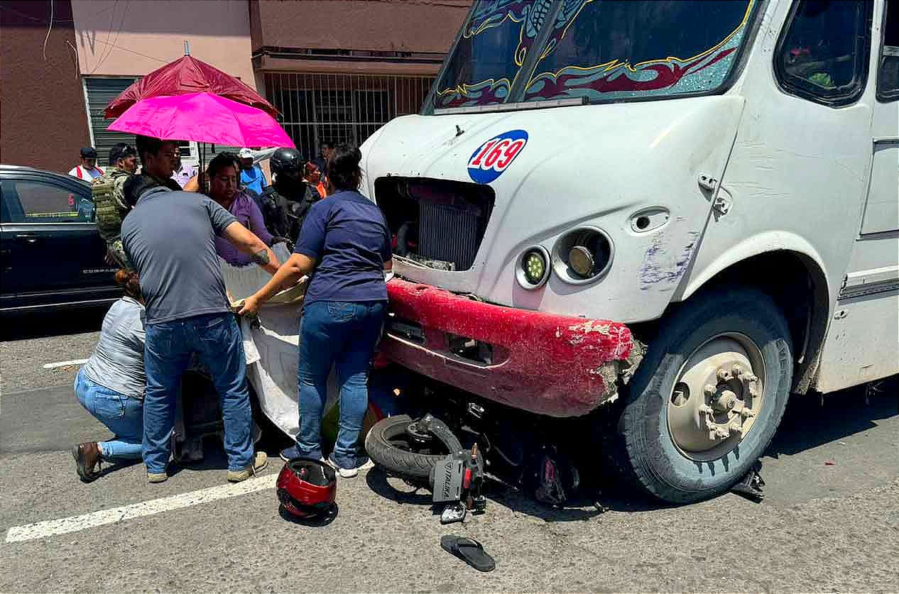 Al llegar al cruce con la avenida Guerrero, un autobús de la Ruta Calle 12, con número económico 169 y conducido por Marcos Ávila F., de 35 años, apareció en sentido contrario, provocando un choque, la cual el motorizado fue arrollado y arrastrado, quedando la unidad de dos ruedas atrapada bajo el autobús y él tendido en el asfalto.