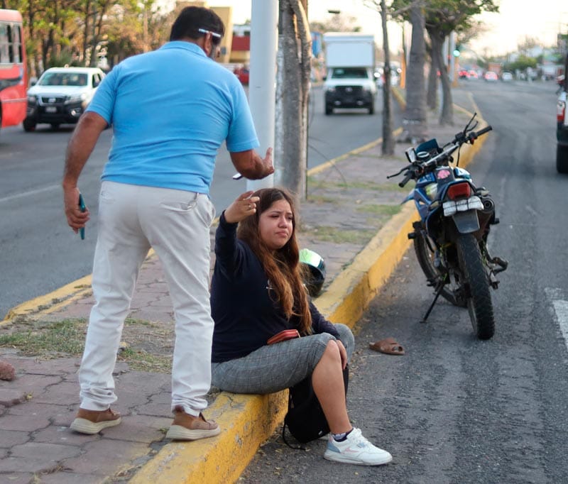 Ambos cayeron al pavimento y fueron auxiliados por testigos del percance, así como por oficiales de Tránsito Municipal de Veracruz, los cuales resguardaron la zona.