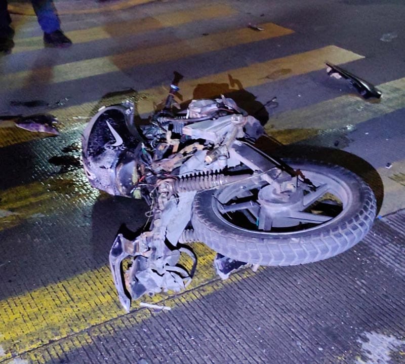 El impacto fue tan fuerte que la motocicleta quedó partida en dos, en medio de la calle, además de que se registró derrame de combustible.