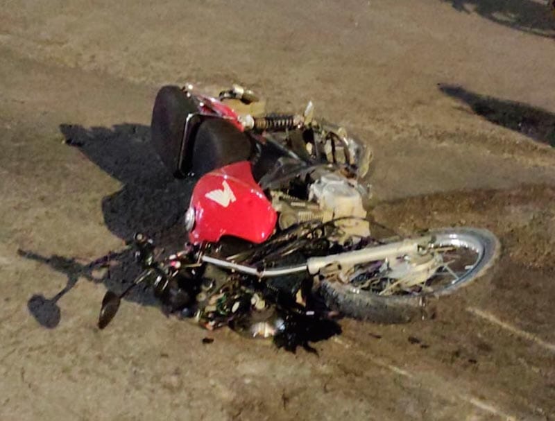 La unidad de dos ruedas fue aventada unos metros adelante y Adrián N., tirado en el pavimento con varios golpes.