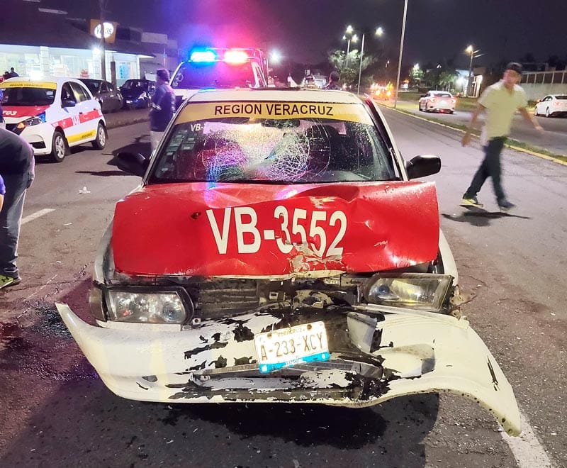 En sentido contrario iba la motocicleta de la marca Honda, de color rojo, guiada por el sujeto Adrián N., el cual terminó incrustado y proyectado contra la parte frontal de un automóvil, marca Nissan, tipo Tsuru, del servicio de taxi, económico VB-3552.