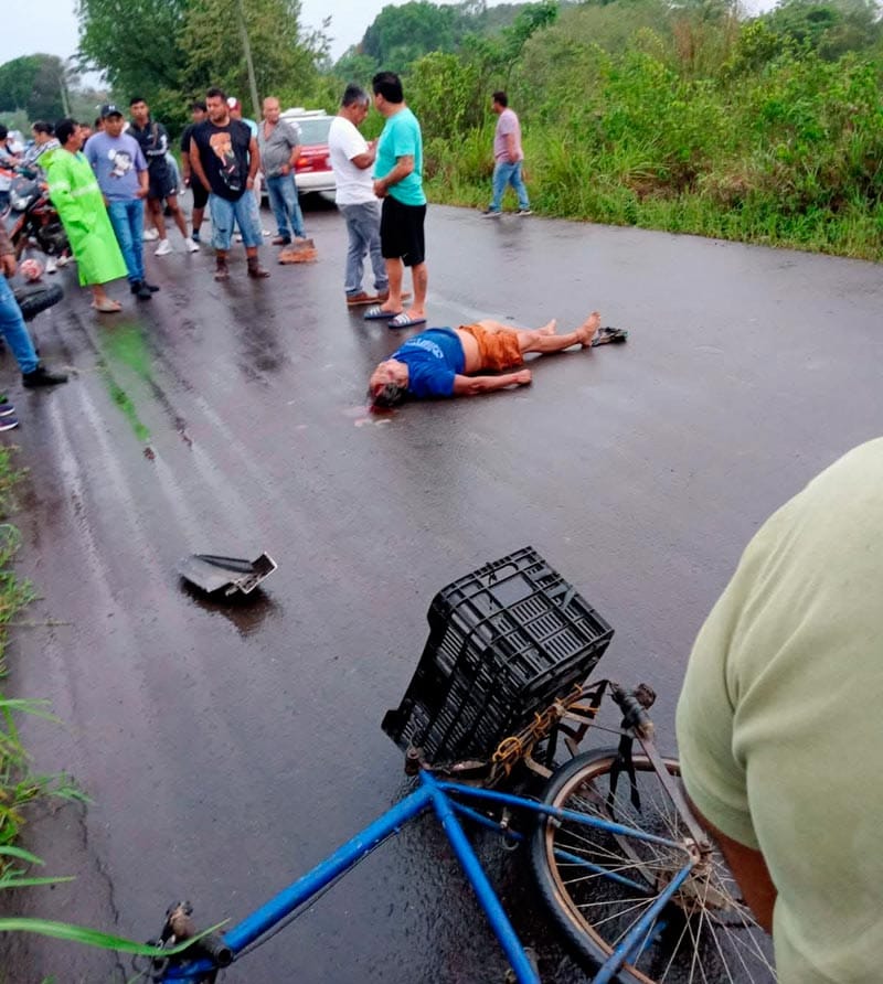 La víctima fue identificada como Genaro Castañeda, vecino de una de las comunidades cercanas, quien al momento del accidente se desplazaba en bicicleta.