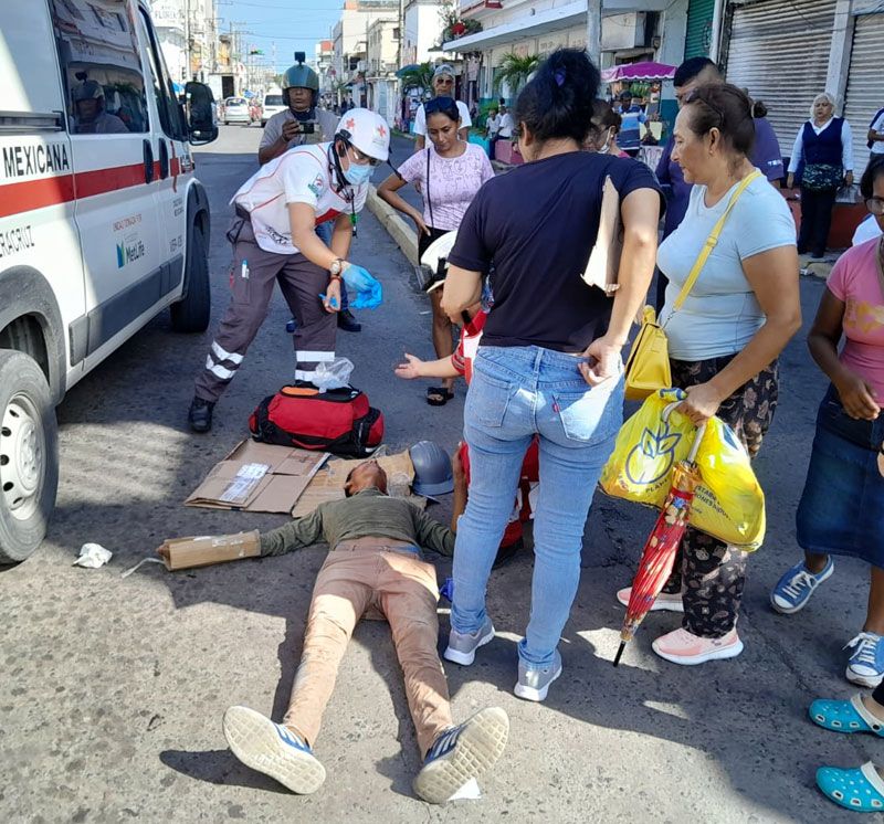 La tranquilidad de la tarde en la zona de mercados de la ciudad de Veracruz se vio interrumpida por un fuerte accidente que dejó a un motociclista hospitalizado luego de colisionar con un autobús del servicio urbano.