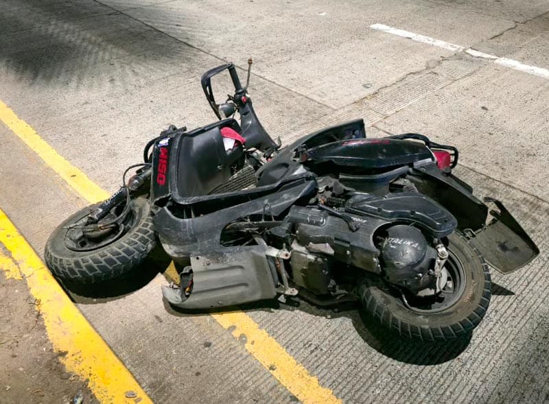 El joven salió proyectado varios metros de su motoneta, marca Italika, tipo 150, cayó al suelo resultando con un fuerte golpe en la cabeza.