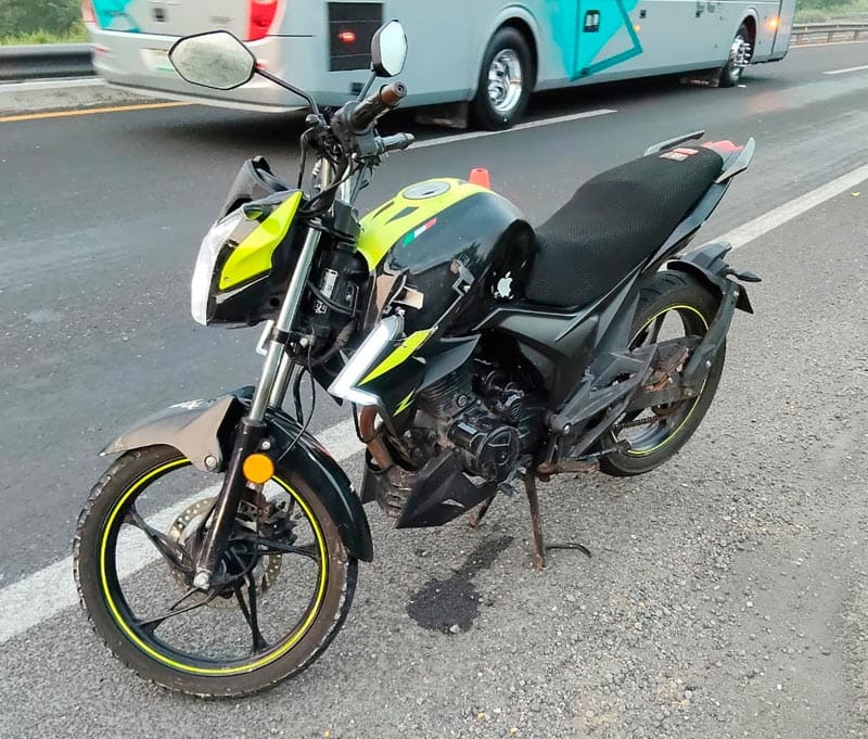 Ahí estaba tirado en la cuneta centra de los carriles de la autopista, un motociclista que viajaba en su unidad marca Italika, de color negro con verde fluorescente.