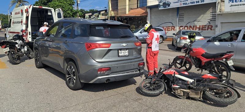 En calles de la colonia Emiliano Zapata, en el puerto de Veracruz, a la altura de las instalaciones de la FGR, se presentó un percance por alcance entre un motociclista y una camioneta de la marca Chevrolet, dejando daños materiales, caos vial y la presencia de los cuerpos de emergencia.