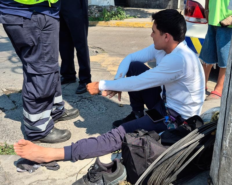 El motociclista acabó en el pavimento con varios golpes y posible fractura en una pierna. Logrando ser auxiliado por testigos de percance.