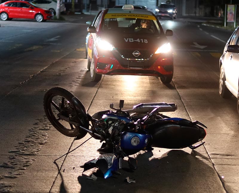 La mujer sufrió una probable fractura de cadera, así como lesiones en la frente y en su mano derecha. Mientras su unidad de dos ruedas quedó a la mitad del carril que va de Veracruz a Boca del Río.