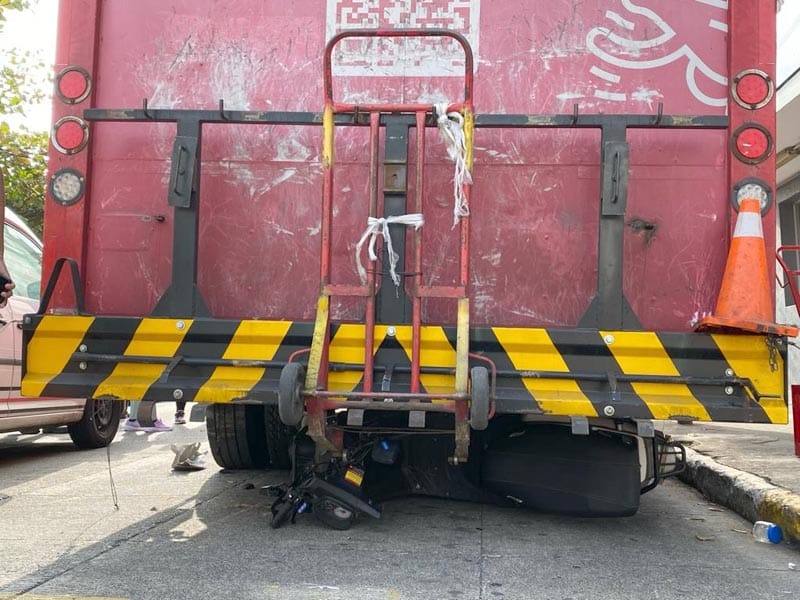 Por el impacto, la motoneta salió proyectada hasta quedar abajo de un camión repartidor de refresco estacionado.