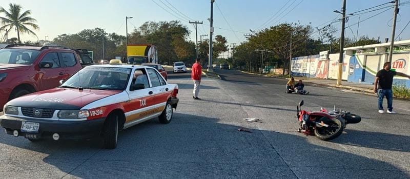 Dicha acción generó que se le impactara el conductor de una motocicleta, de la marca Italika, tipo Vort-X, mismo que manejaba en el mismo sentido en que iba el taxista.