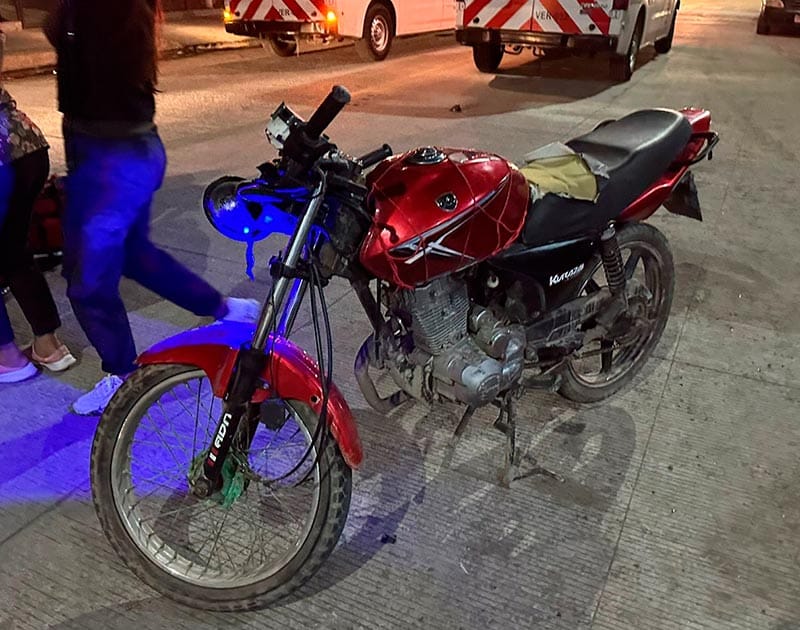 En calles de la colonia Amapolas, en la ciudad de la ciudad de Veracruz, un motociclista impactó a una mujer y un menor de 7 años de edad, cuando iba a rebasar a un taxista, quedando tirados con severos golpes.