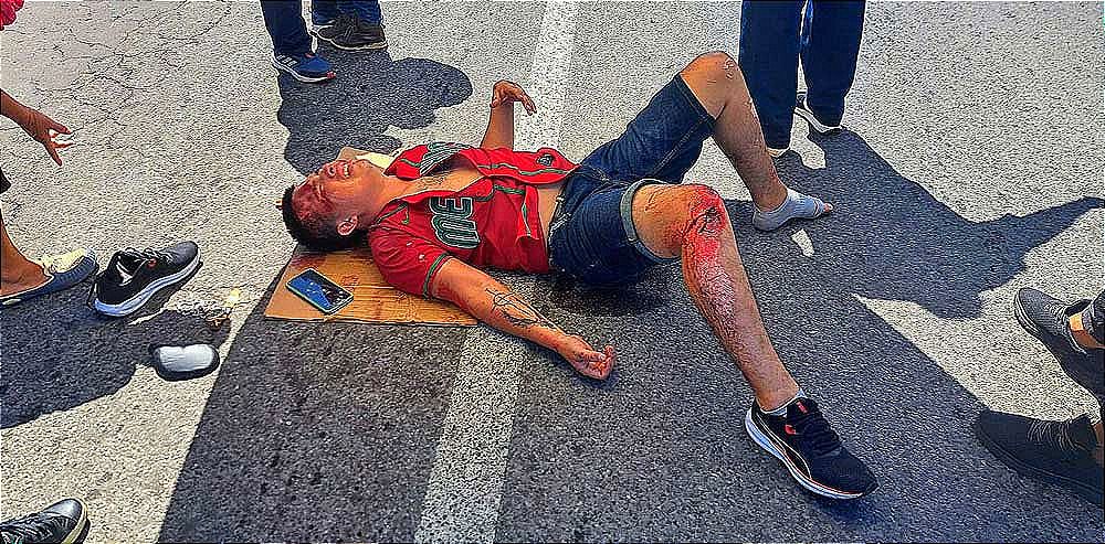 El joven salió disparado varios metros de distancia, pegando contra el pavimento, desprendiéndose el casco de seguridad. La motocicleta avanzó todavía hasta la altura del puente peatonal.