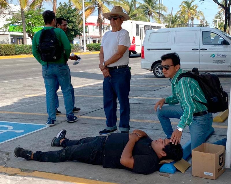 En céntricas calles de la ciudad de Veracruz, un motociclista fue impactado por la conductora de una camioneta quedando tirado en el pavimento con diversos golpes, y generando la presencia de personal de emergencias.