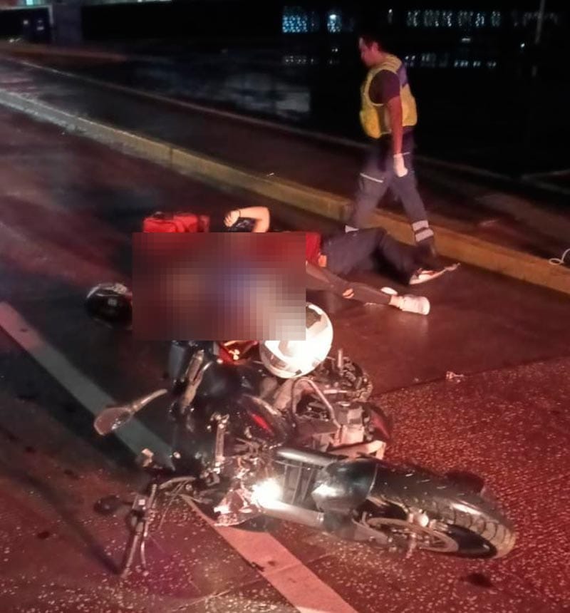 A tres metros estaba el cadáver de una jovencita identificada como Sayuri M., de 20 años, quien perdió la vida al impactarse contra la guarnición en el momento de salir proyectada de la motocicleta.