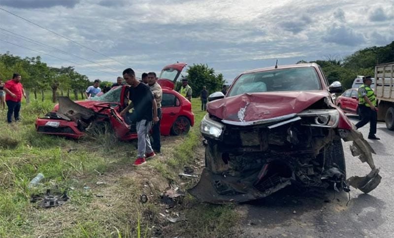 Durante la maniobra invadió el carril contrario y chocó de frente contra una camioneta Toyota Hilux color rojo, placas XF-2136-A de Veracruz, quedando ambos vehículos con el frente desbaratado.