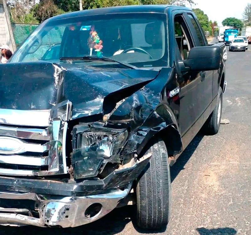 *El ruletero chocó contra una camioneta y posteriormente al atravesarse sobre la carretera fue impactado por una Ford Lobo color negro, la cual le desbarató las puertas del lado derecho.