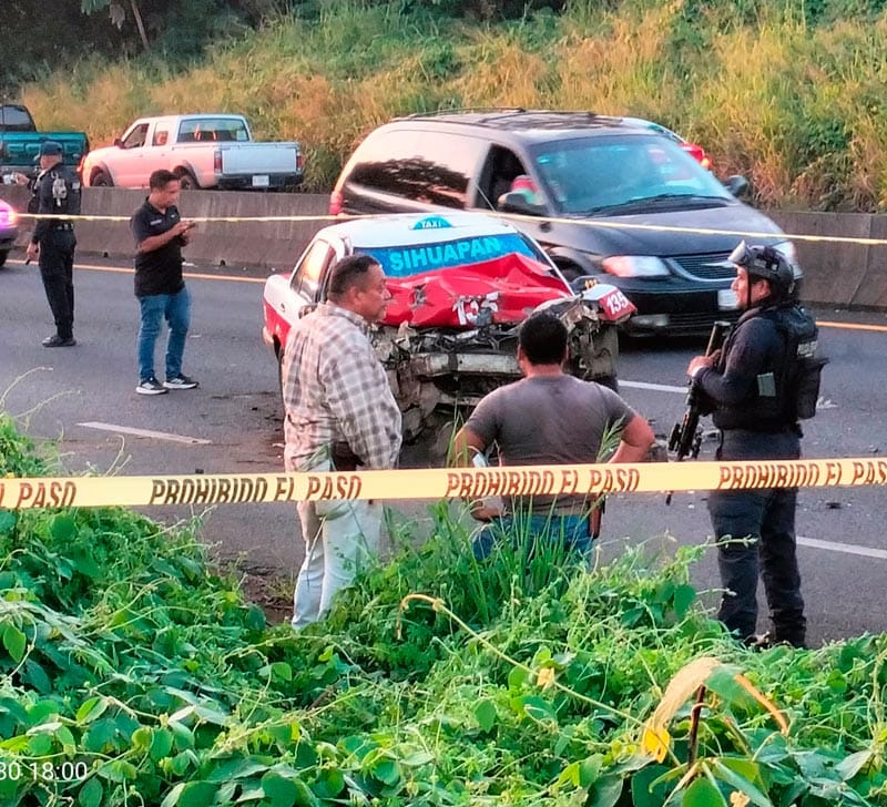 De acuerdo con los primeros reportes, el percance ocurrió entre la gasolinera de Chilapan y las instalaciones del SEMEFO, cuando el taxi con número económico 165 de la marca Nissan Tsuru se estrelló en la parte trasera del vehículo de carga que transportaba varias toneladas de piedra.