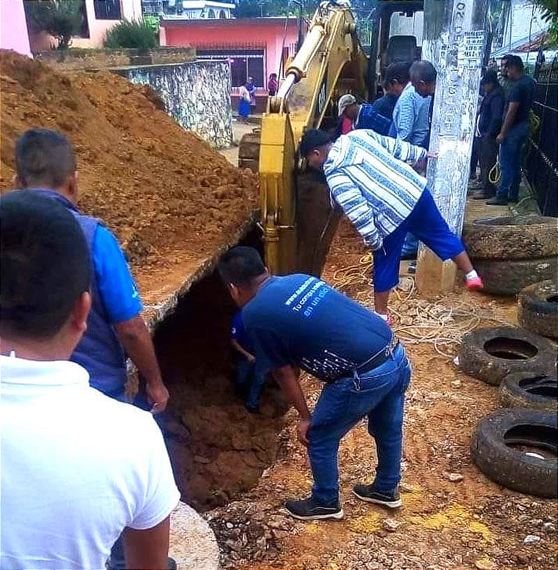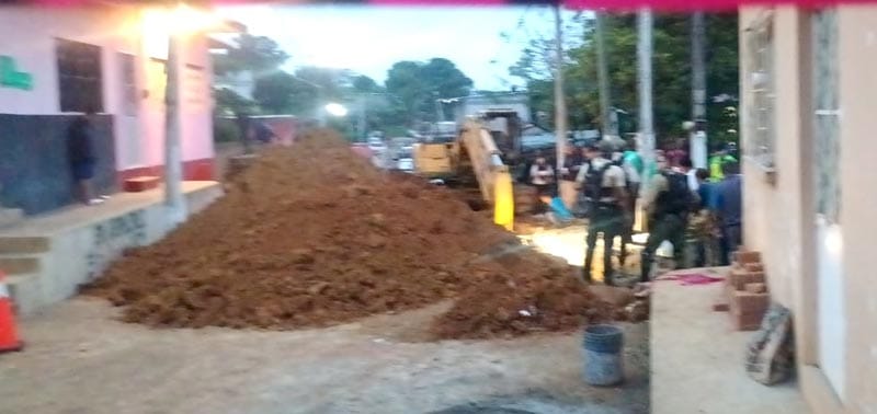 Acudió el oficial de la Fuerza Civil, Lázaro Cárdenas, con el personal a bordo de las patrullas FC-2789, FC-2798 y FC-2739, localizando una zanja de seis metros de profundidad y un grupo de rescatistas trabajando en ese lugar.