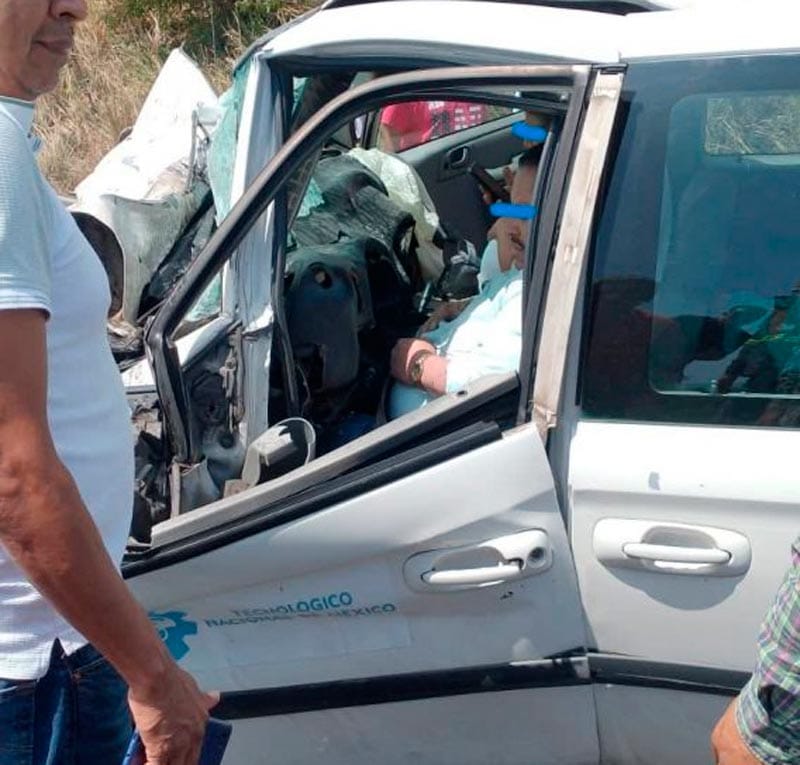 Al mediodía, una camioneta tipo vagoneta con razón social del Tecnológico Nacional de México circulaba por la carretera federal 180 tramo Cardel-Poza Rica cuando, a la altura de Laguna Verde, chocó de frente contra una Nissan color blanco razón social Altex Agroindustriales.