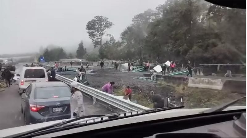 *La carga consistente en estructuras metálicas quedaron esparcidas en los carriles de la autopista situación que aprovecharon rapiñeros para robársela