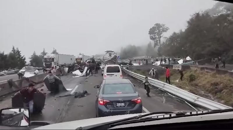 Chocó contra el muro de concreto que divide los carriles de la autopista y posteriormente volcó, las estructuras metálicas quedaron regadas sobre el asfalto y fueron robadas por los rapiñeros.