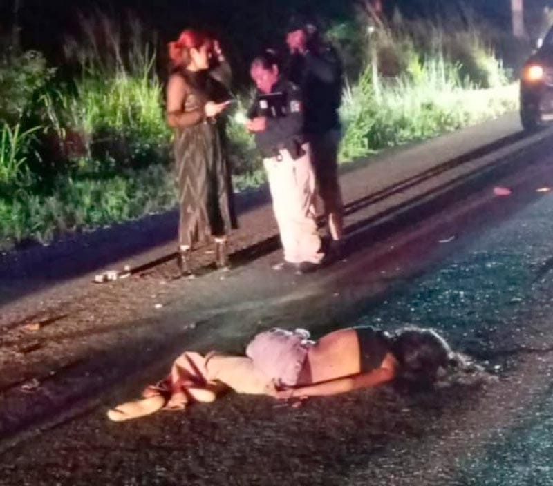 La mujer motociclista quedó tendida sobre el pavimento, mientras su acompañante y la unidad fueron proyectados hacia la maleza, quedando la escena completamente destrozada.