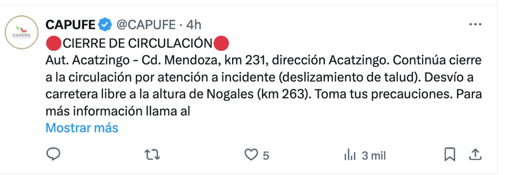 Operadores de la línea de emergencias 911 reportaron un accidente justo en el kilómetro 238+000, tramo Libramiento La Estancia-Trébol de Maltrata, en carril con dirección al puerto de Veracruz, casi a la media noche del lunes.
