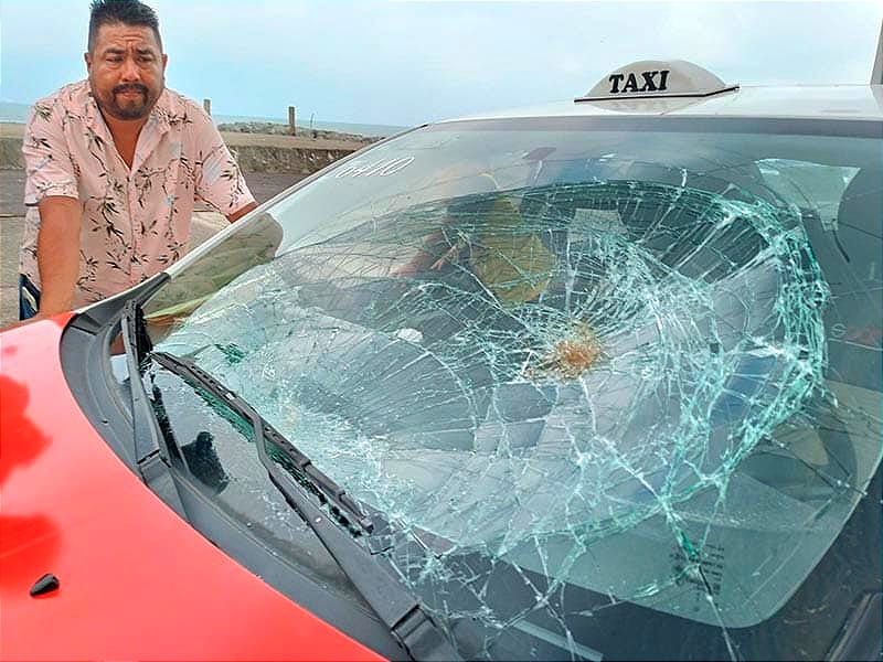 El taxista relató que una mujer que venía corriendo del camellón central con dirección hacia al mar cruzó sin precaución y la embistió, impactándose contra el parabrisas del auto.