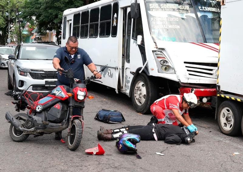 El oficial de Tránsito Municipal le pidió detenerse y esperar una grúa, pero Viviana N., encendió la moto y aceleró sin control, recorriendo varios metros sobre Dos de Abril hasta estrellarse contra un carro, de la marca Nissan, tipo March cerca de la calzada Simón Bolívar.