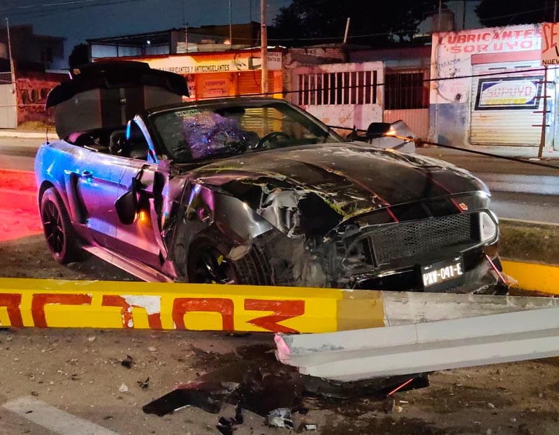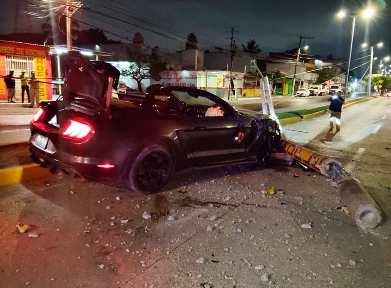 Ahí iba circulando el automóvil Ford Mustang cuyo operador iba a gran velocidad y en aparente estado etílico, perdiendo el control, llevándose una luminaria y luego el poste de concreto de la CFE que quedaron en la carpeta de rodamiento.