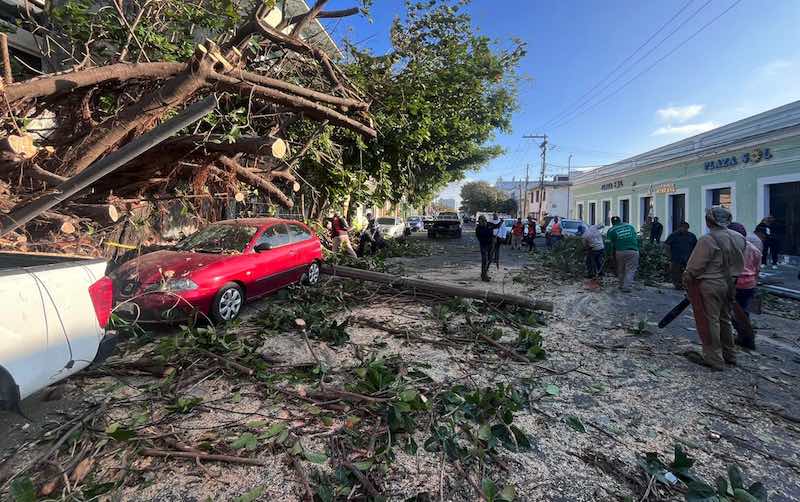 Trabajaron durante varias horas para remover el árbol y los escombros, cortándolo en partes que fueron trasladadas en camiones de volteo.
