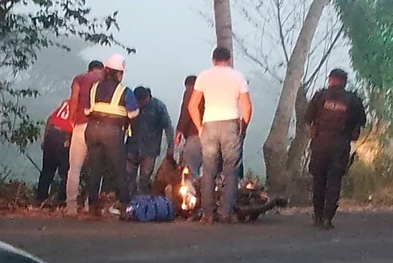 Al lugar llegó el personal de Protección Civil, quienes se encontraron con un masculino de aproximadamente 40 años, originario de la localidad de Vicente Guerrero, municipio de Cosamaloapan, presentaba Traumatismo Craneoencefálico Severo, con exposición de masa encefálica.