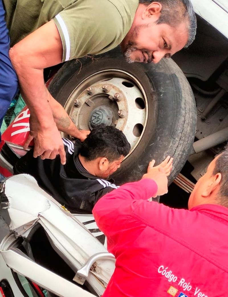 Testigos alertaron a los cuerpos de emergencia, y al lugar arribaron la Cruz Roja y Bomberos Municipales de Veracruz para realizar las maniobras y liberar al taxista prensado, además de brindar atención a los demás lesionados.