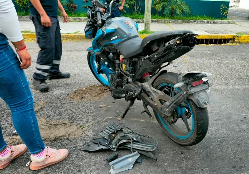 A la altura del fraccionamiento Los Pinos, en la ciudad de Veracruz, una pareja que viajaba a bordo de una motocicleta se impactó contra un automóvil de la marca Volkswagen, tipo Gol, movilizándose personal de emergencias y agentes de vialidad.