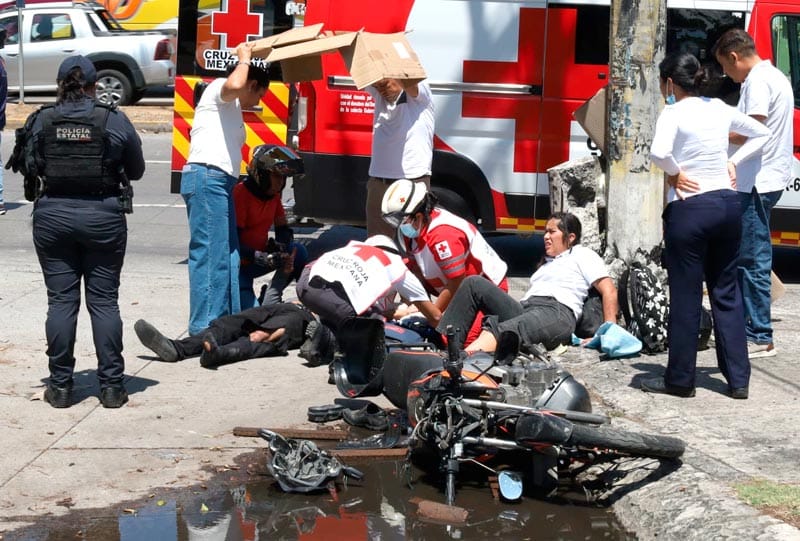 En las inmediaciones del Cuartel de la SEDENA de la Boticaria, en Boca del Rio, una pareja en motocicleta acabó en el hospital luego de que sufrieron un fuerte accidente.